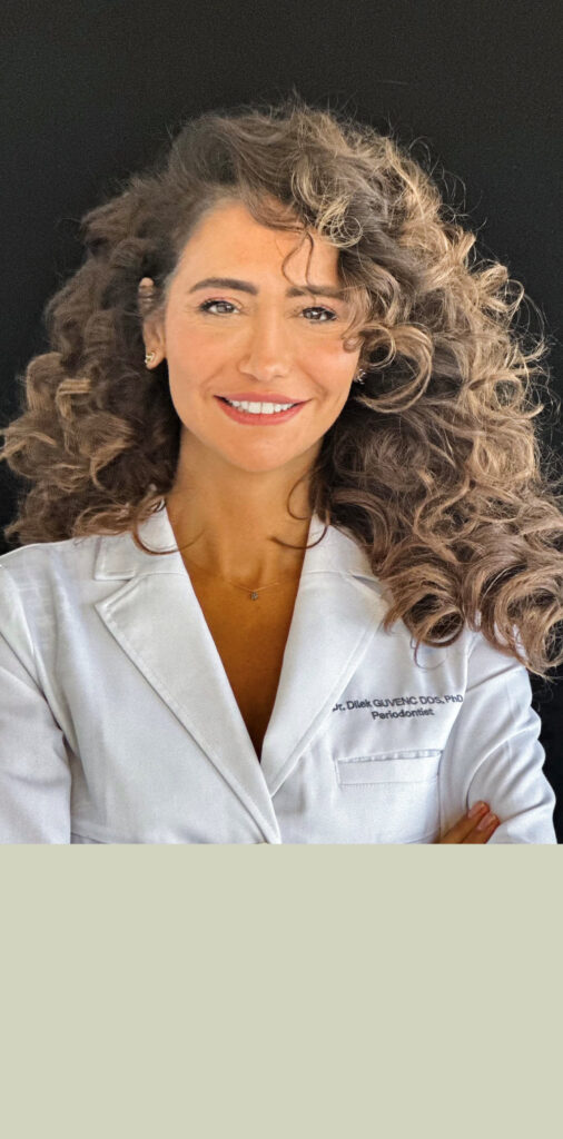 Dr. Guvenc is an accomplished periodontist from Istanbul, known for her strong interest in dental aesthetics. She earned her Dentistry degree from the University of Istanbul, followed by a PhD in periodontology. Her doctoral research, which explored the connection between generalized aggressive periodontitis and cardiovascular disease received special distinction. She completed her PhD in 2010. Following her doctorate, Dr. Guvenc spent six years as a faculty member in the Periodontology Department at Istanbul University, where she performed complex surgeries and educated students. In 2013, she was named an associate professor at Istanbul Aydın University before moving into private practice. In her clinic, Dr. Guvenc's expertise includes implantology, treating periodontal disease, cosmetic dentistry, periodontal plastic surgery, bone regeneration, and facial aesthetic procedures. She is a highly regarded practitioner with a presence in both Istanbul and London. Committed to continuous education, Dr. Guvenc frequently attends and presents at international conferences, courses, and symposiums. She holds memberships with the Turkish Society of Periodontology, the International Team for Implantology, and the British Society of Periodontology.